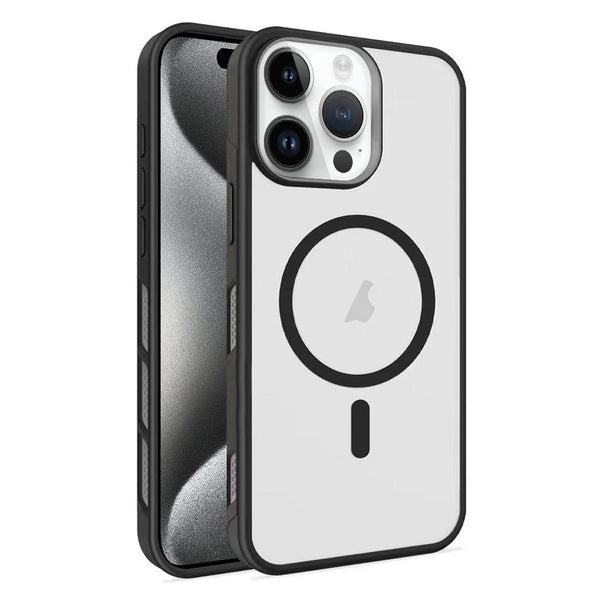 For iPhone 15 Pro Frosted Translucent Side Ice Fog Cooling MagSafe Phone Case(Black)