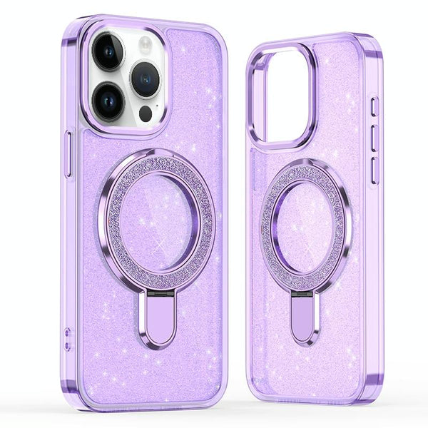 For iPhone 15 Pro Glitter Ring Holder MagSafe Phone Case(Purple)