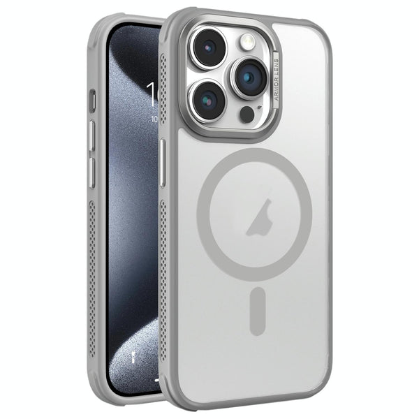 For iPhone 15 Pro Hardware Side Cooling Skin Feel Frosted Metal Lens Frame MagSafe Phone Case(Grey)