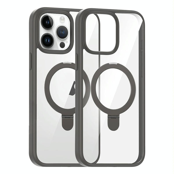 For iPhone 15 Pro High Transparency MagSafe Holder Phone Case(Titanium Gray)