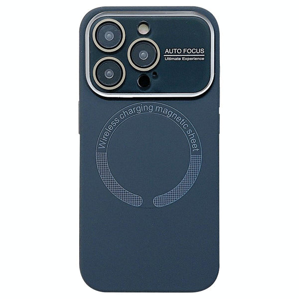 For iPhone 15 Pro Large Window Acrylic Glass Lens MagSafe Silicone Phone Case(Graphite Grey)