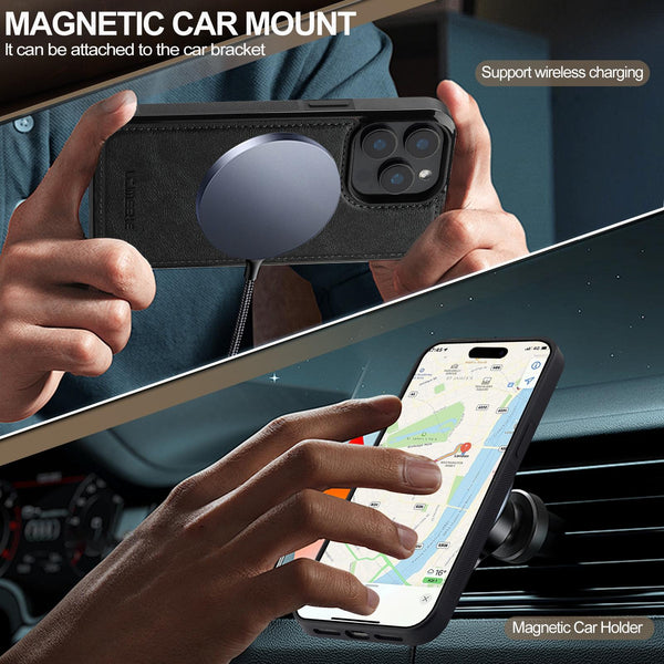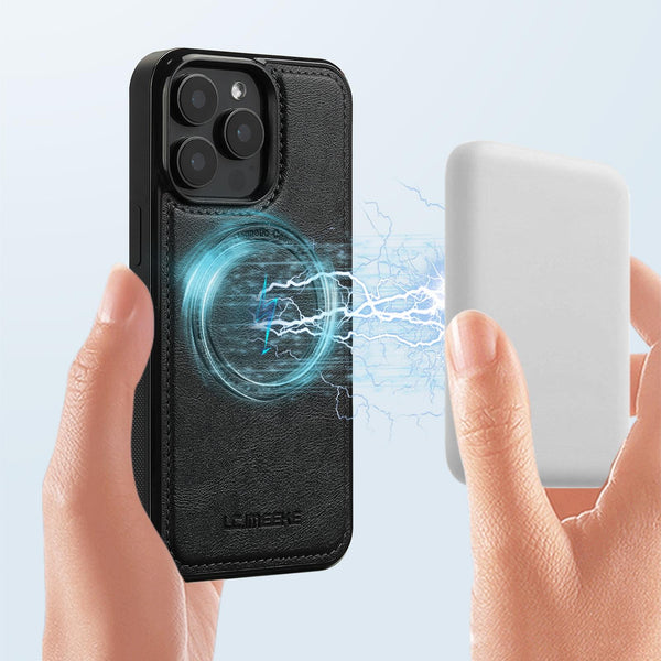 For iPhone 15 Pro LC.IMEEKE 2 in 1 RFID Magsafe Phone Case(Black)