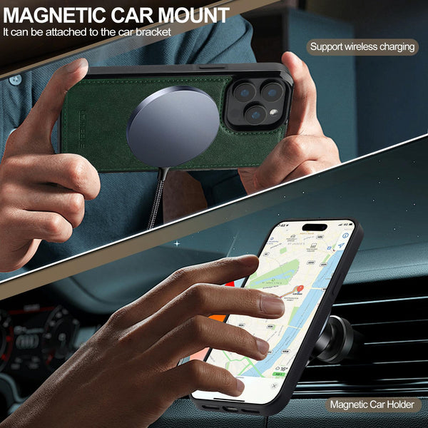 For iPhone 15 Pro LC.IMEEKE 2 in 1 RFID Magsafe Phone Case(Green)