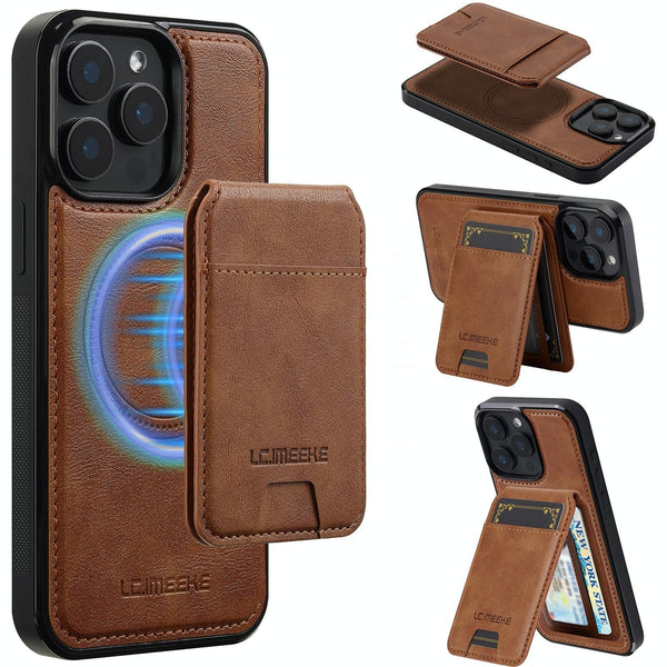 For iPhone 15 Pro LC.IMEEKE L3 Series Detachable RFID Card Bag Magsafe Phone Case(Brown)