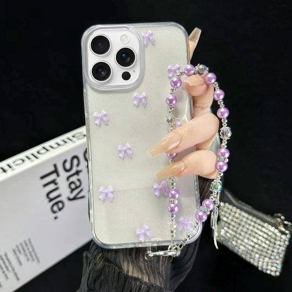 For iPhone 15 Pro Little Fresh Bow Bracelet Chain TPU Phone Case(Purple)