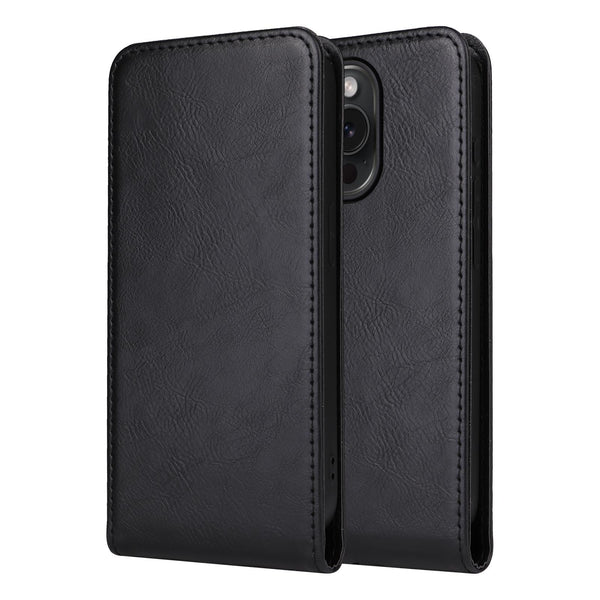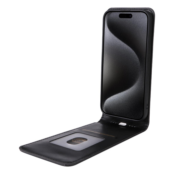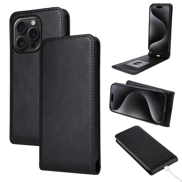 For iPhone 15 Pro Magnetic Vertical Flip Leather Phone Case(Black)