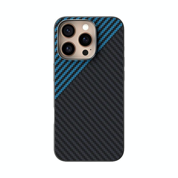 For iPhone 15 Pro Max ABEEL C Carbon Fiber Series 6D Micro Relief MagSafe Phone Case(Black Blue)