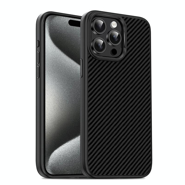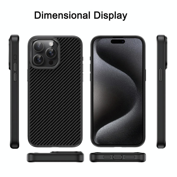 For iPhone 15 Pro Max Carbon Fiber Textured Oil Spray MagSafe Magnetic Phone Case(Black)