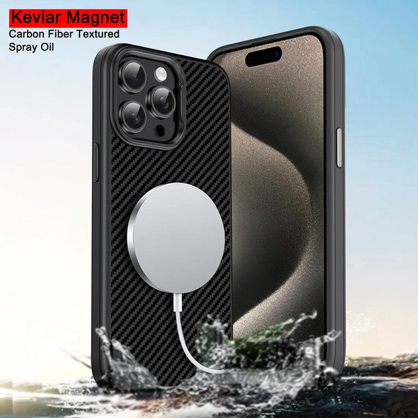 For iPhone 15 Pro Max Carbon Fiber Textured Oil Spray MagSafe Magnetic Phone Case(Grey)