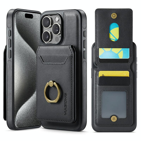 For iPhone 15 Pro Max DG.MING K1 MagSafe Detachable Wallet RFID Back Cover Phone Case(Black)