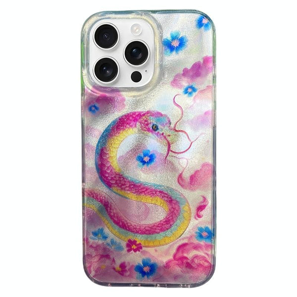 For iPhone 15 Pro Max Double Layer IMD Pattern TPU Phone Case(Pink snake)