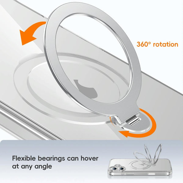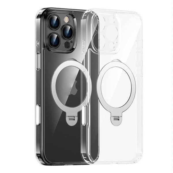 For iPhone 15 Pro Max Fine Hole 360 Degree Rotating Holder MagSafe Phone Case(Transparent)