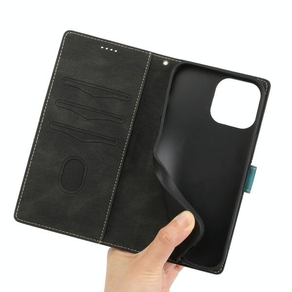 4. Wallet Function: The leather case is equipped with card slots for placing cards and a small amount of cash.