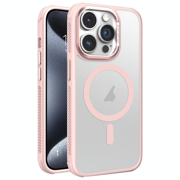 For iPhone 15 Pro Max Hardware Side Cooling Skin Feel Frosted Metal Lens Frame MagSafe Phone Case(Pink)