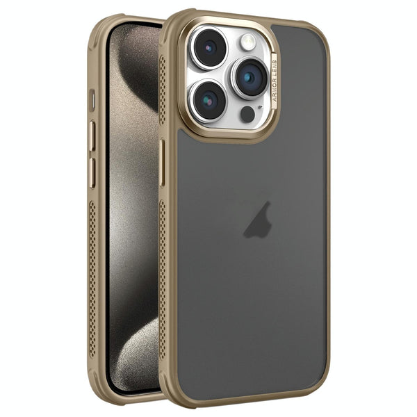 For iPhone 15 Pro Max Hardware Side Cooling Skin Feel Frosted Metal Lens Frame Phone Case(Gold)