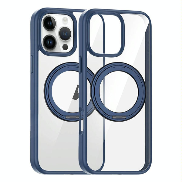 For iPhone 15 Pro Max High Transparency 360 Degree Rotating Holder MagSafe Phone Case(Dark Blue)