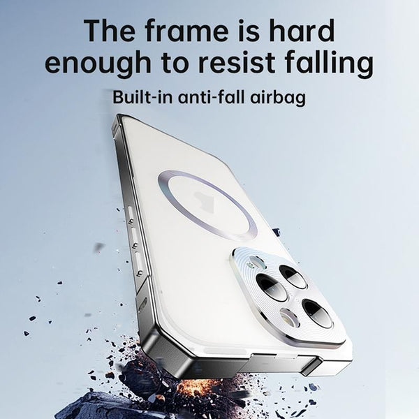 For iPhone 15 Pro Max Irregular Alloy Frame Fosted Translucent MagSafe Phone Case(Blue)