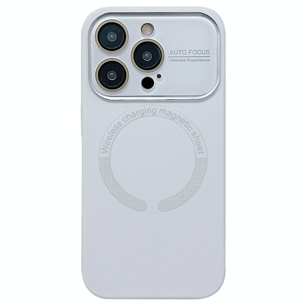 For iPhone 15 Pro Max Large Window Acrylic Glass Lens MagSafe Silicone Phone Case(White)