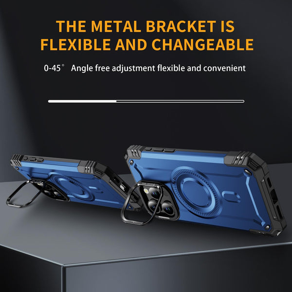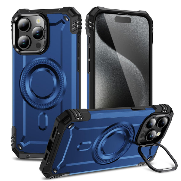 For iPhone 15 Pro Max Lens Holder MagSafe Phone Case(Blue)