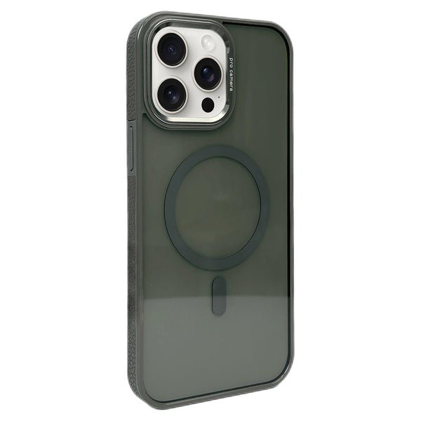 For iPhone 15 Pro Max Metal Lens Frame MagSafe Phone Case(Dark Grey)
