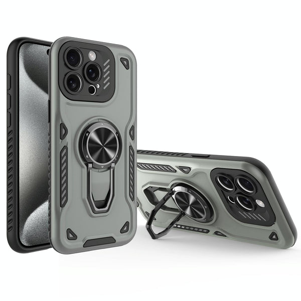 For iPhone 15 Pro Max Metal Rotating Bracket TPU + PC Magnetic Phone Case(Carbon Grey)
