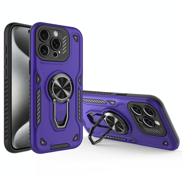 For iPhone 15 Pro Max Metal Rotating Bracket TPU + PC Magnetic Phone Case(Dark Purple)