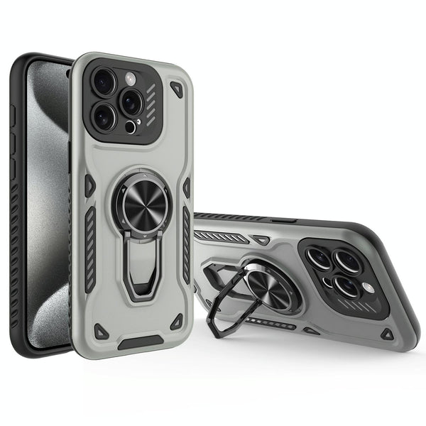 For iPhone 15 Pro Max Metal Rotating Bracket TPU + PC Magnetic Phone Case(Gray)