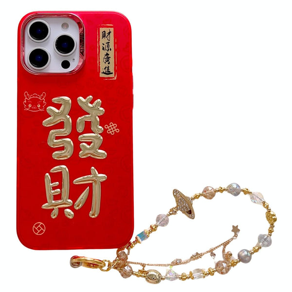 For iPhone 15 Pro Max New Year Design 3D Gold Stamping IMD Phone Case with Crystal Chain(Fortune)