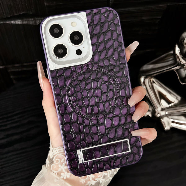 For iPhone 15 Pro Max Pebble Pattern PU MagSafe Phone Case with Holder(Purple)