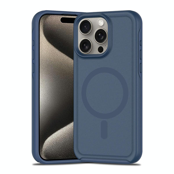 For iPhone 15 Pro Max Shockproof MagSafe Armor PC Hybrid TPU Phone Case(Ink Blue)