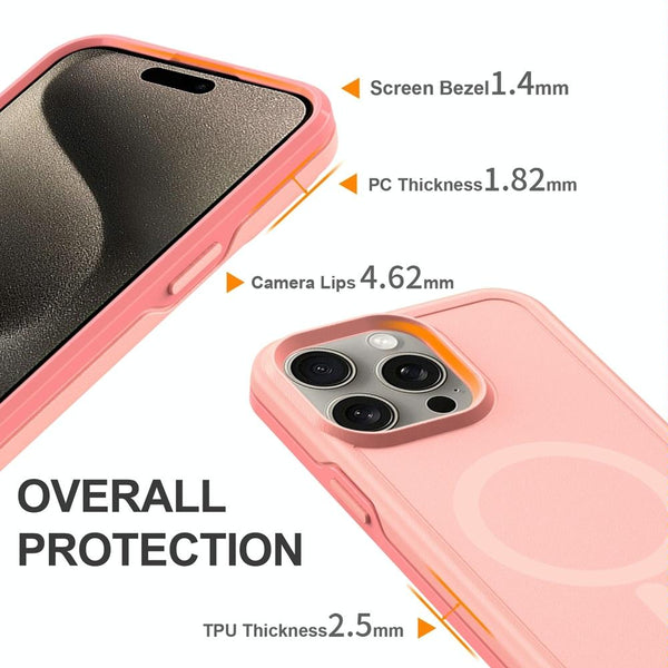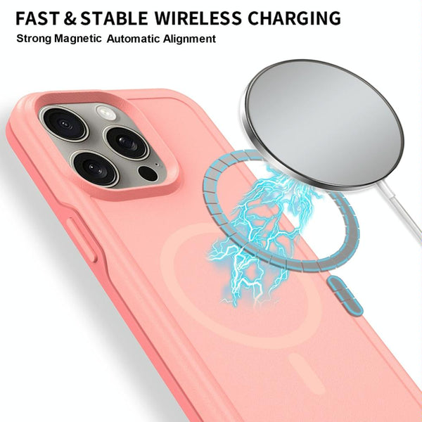 For iPhone 15 Pro Max Shockproof MagSafe Armor PC Hybrid TPU Phone Case(Light Pink+Coral Red)