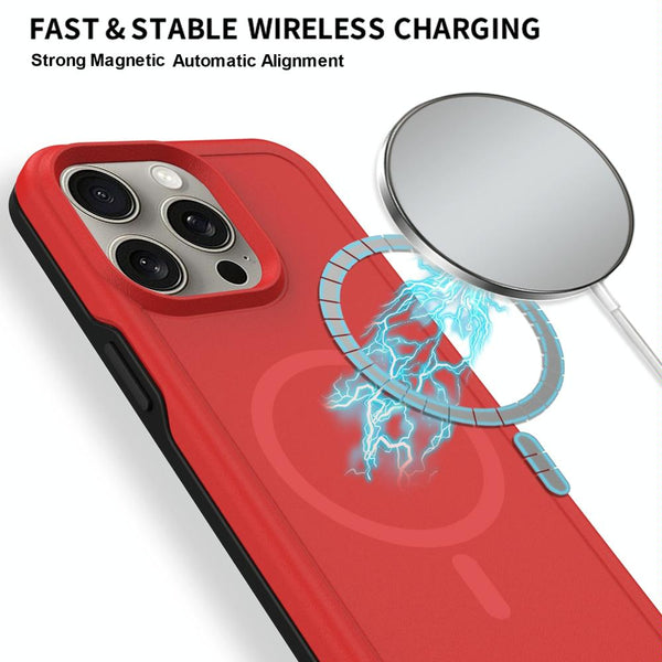 For iPhone 15 Pro Max Shockproof MagSafe Armor PC Hybrid TPU Phone Case(Red+Black)