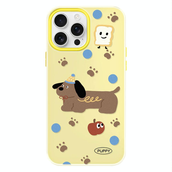For iPhone 15 Pro Max Skin Feeling Jelly TPU Hybrid PC Phone Case(Brown Puppy Yellow)