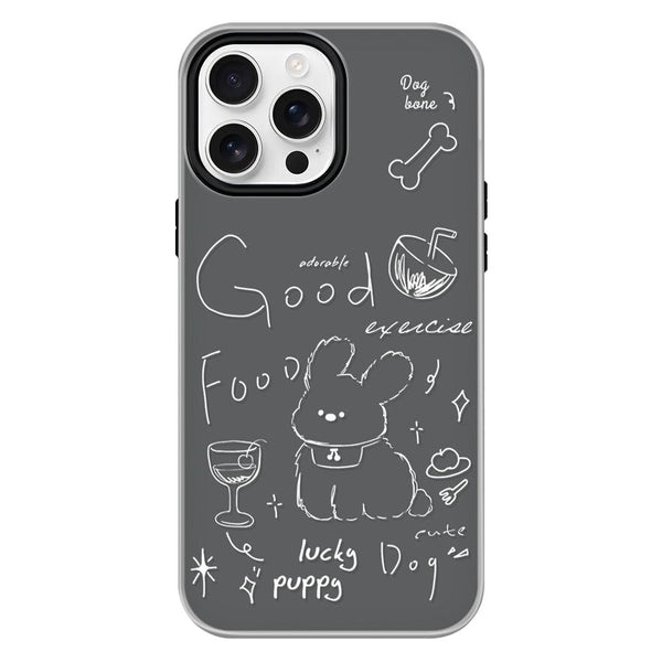 For iPhone 15 Pro Max Skin Feeling Jelly TPU Hybrid PC Phone Case(Doodle Puppy Black)