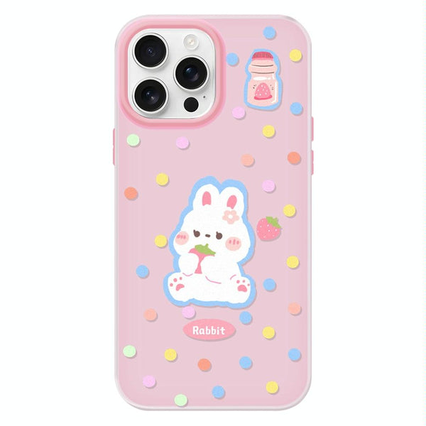 For iPhone 15 Pro Max Skin Feeling Jelly TPU Hybrid PC Phone Case(Polka Dot Rabbit Pink)