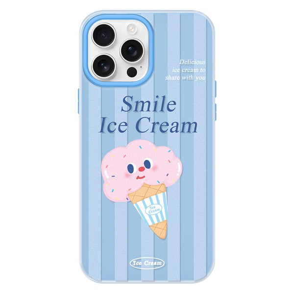 For iPhone 15 Pro Max Skin Feeling Jelly TPU Hybrid PC Phone Case(Smiling Ice Cream Blue)