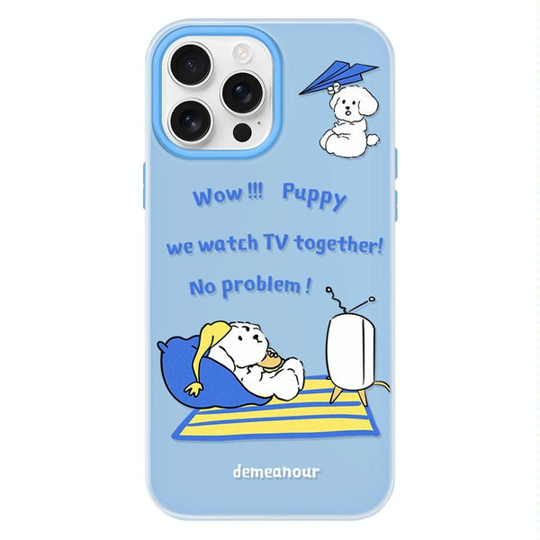 For iPhone 15 Pro Max Skin Feeling Jelly TPU Hybrid PC Phone Case(TV Dog Blue)