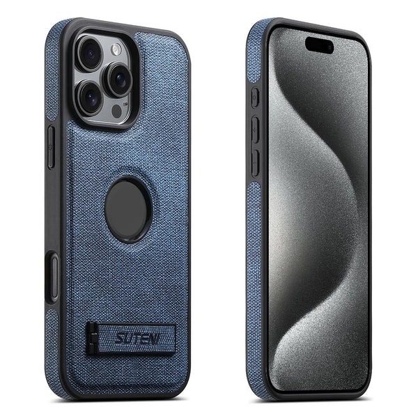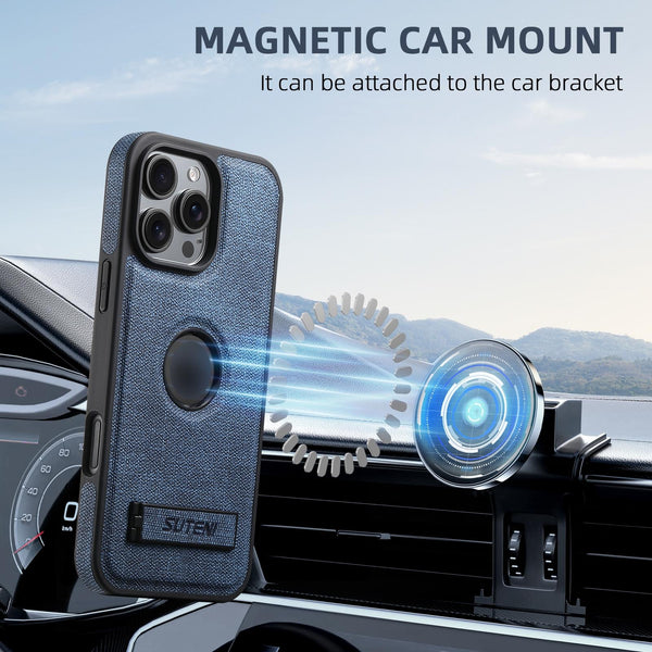 For iPhone 15 Pro Max Suteni G2 Holder Denim Leather Back MagSafe Phone Case(Blue)
