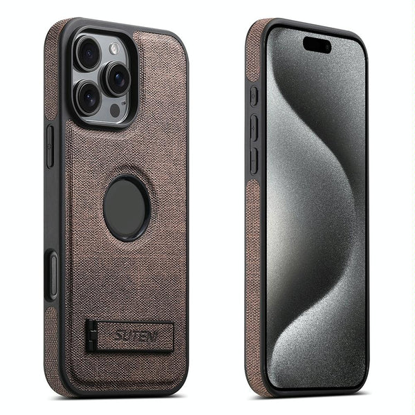 For iPhone 15 Pro Max Suteni G2 Holder Denim Leather Back MagSafe Phone Case(Brown)
