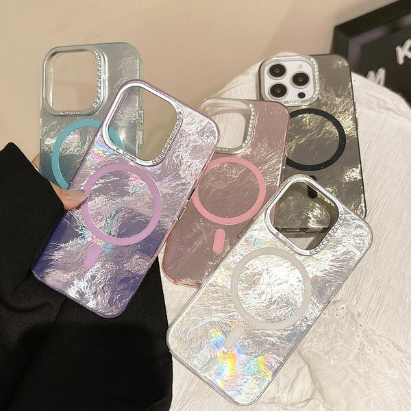 For iPhone 15 Pro Max Tinfoil Texture MagSafe PC Phone Case(Blue)
