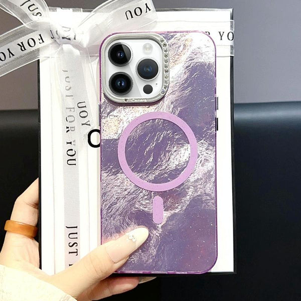 For iPhone 15 Pro Max Tinfoil Texture MagSafe PC Phone Case(Purple)