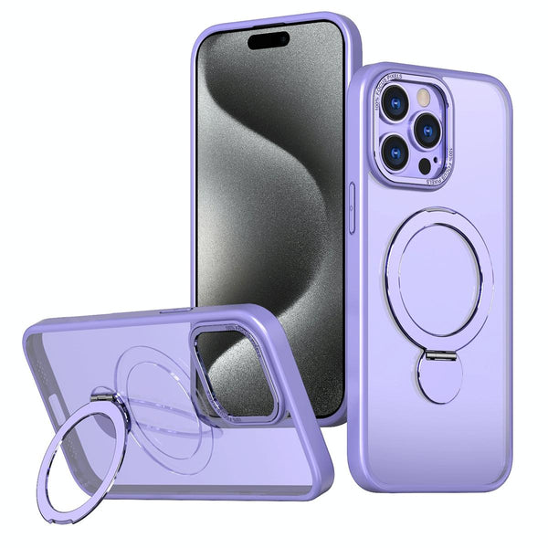 For iPhone 15 Pro Max Wing Series Gen2 MagSafe Metal Ring Holder Phone Case(Light Purple)