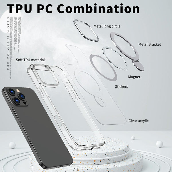 For iPhone 15 Pro Max Wing Series Gen2 MagSafe Metal Ring Holder Phone Case(Transparent)