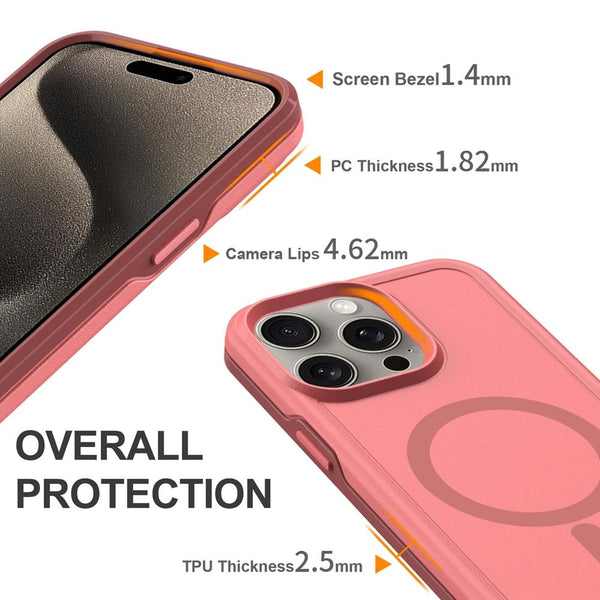 For iPhone 15 Pro Shockproof MagSafe Armor PC Hybrid TPU Phone Case(Dark Pink+Maroon)