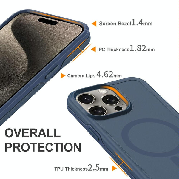 For iPhone 15 Pro Shockproof MagSafe Armor PC Hybrid TPU Phone Case(Ink Blue)