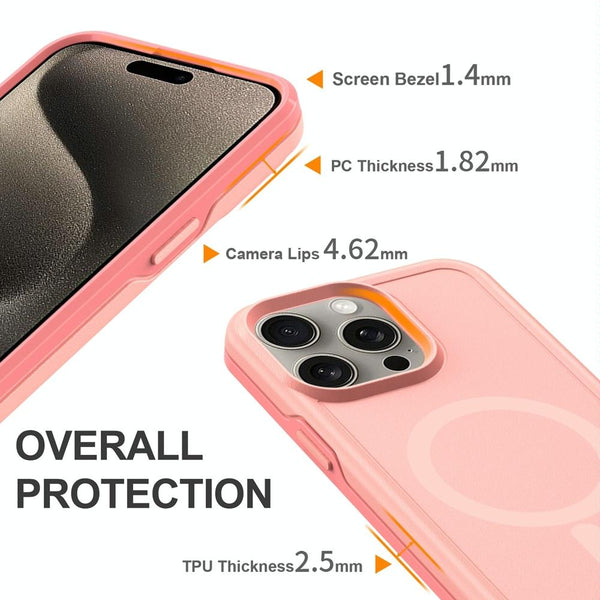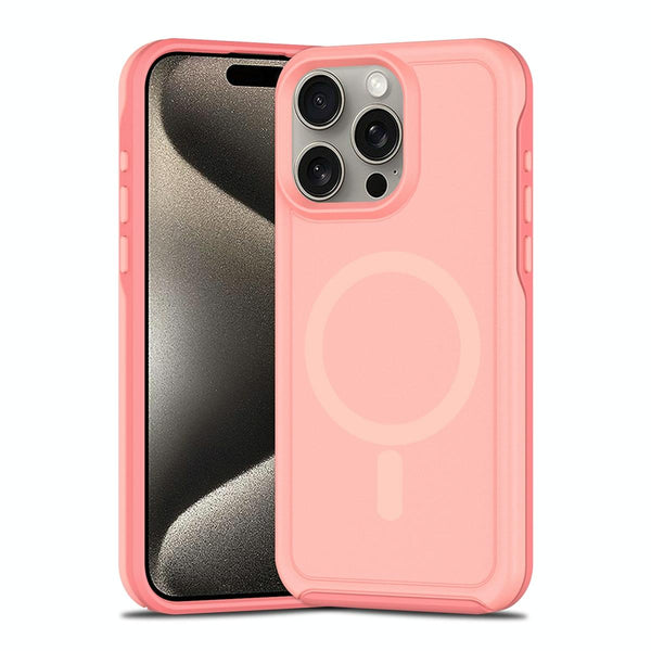 For iPhone 15 Pro Shockproof MagSafe Armor PC Hybrid TPU Phone Case(Light Pink+Coral Red)