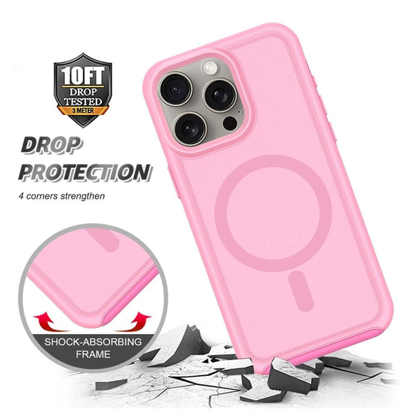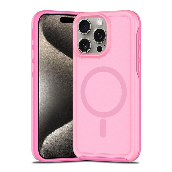 For iPhone 15 Pro Shockproof MagSafe Armor PC Hybrid TPU Phone Case(Purple Pink)