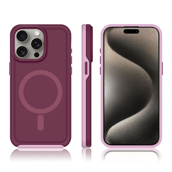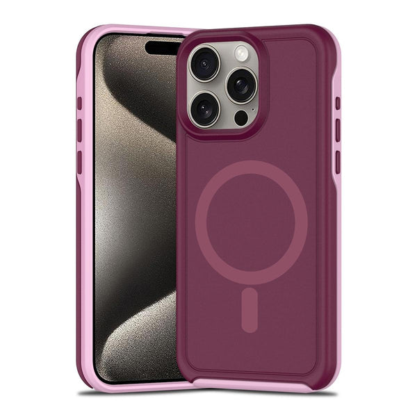 For iPhone 15 Pro Shockproof MagSafe Armor PC Hybrid TPU Phone Case(Wine Red+Light Pink)