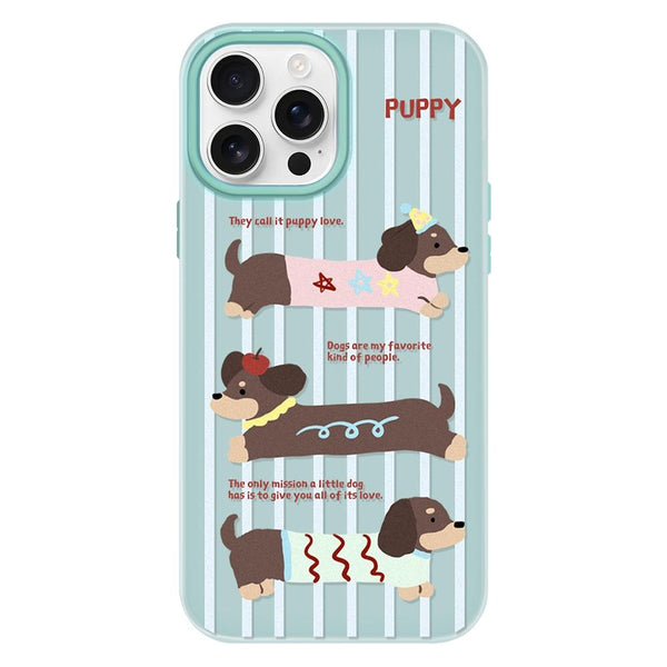 For iPhone 15 Pro Skin Feeling Jelly TPU Hybrid PC Phone Case(Striped Dachshund Light Green)