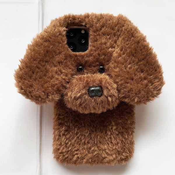 For iPhone 15 Pro Teddy Dog Plush TPU Phone Case(White)